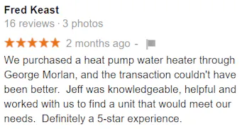 Our in-house staff of technicians (not sub-contractors from another source) install thousands of water heaters every year. Just make one call to George Morlan Plumbing 24 hours a day, 7 days a week and we’ll be on our way to have you back in hot water as soon as THE SAME DAY*